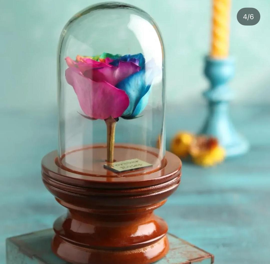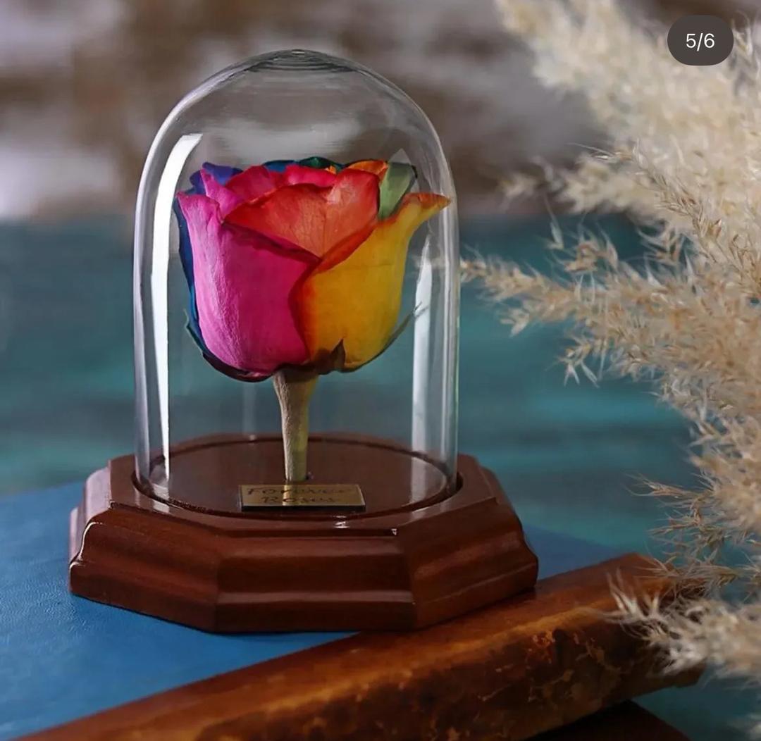 گل رز ی که تعبیه شده کاملا طبیعیه و لی زنده نیست و مومیایی شده که با ماندگاری طولانی مدت تا 5سال براتون بمونه دوراز افتاب و رطوبت باشه.و لمس نشه.جعبه اون باز میشه و میتونین شکلات یا اشیا زینتی داخلش بزارین.