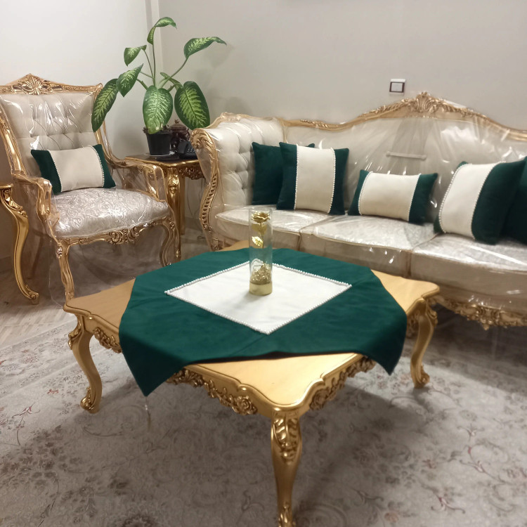 این ست زیبا دوخته شده ازمخمل با کیفیت بالاست.مروارید شده کاملا بادست .استر دوزی شده.پشت هم مخمل .زیپ مخفی.