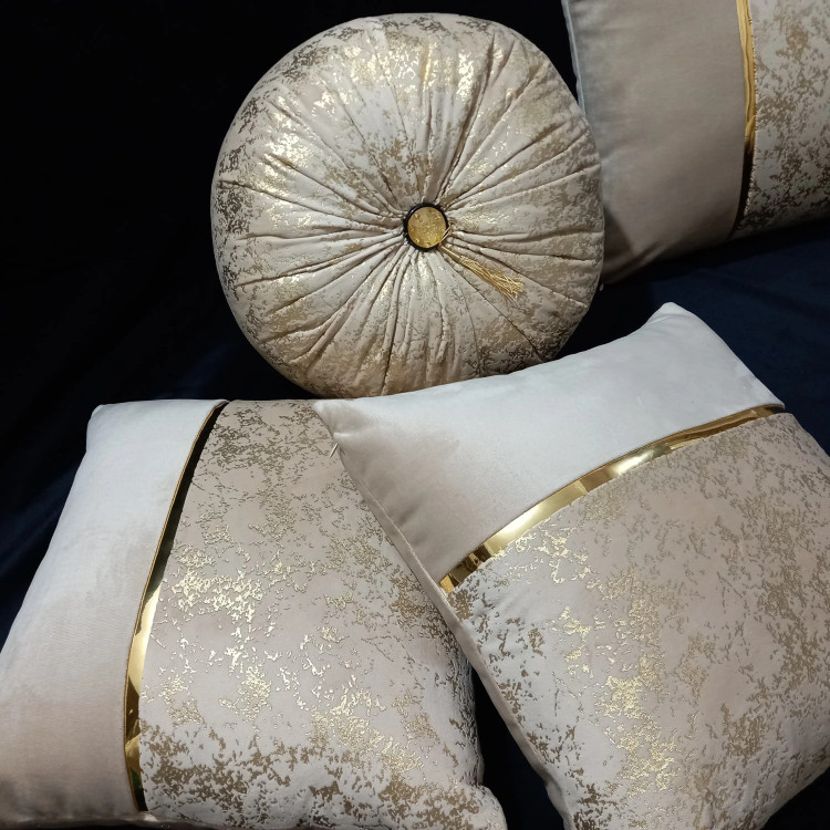 کار طلاکوب یکی از کارهای پرفروشه چون به راحتی با هر جور مبلمانی ست میشه و رنگبندس داره .دوختش صنعتی و زیپ مخفی داره و چرمش از بهترین چرمه موجوده.قابل شست و شو در ماشین بدون ریزش شاین پارچه.